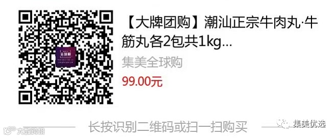 【大牌团购】潮汕正宗牛肉丸·牛筋丸 各2包 共1kg 原价:129元 VIP /黑卡M1会员 福利补贴价:99元 一如“丸”门深似海,吃牛肉丸的最高境界,莫过于整个丢进嘴里,牛肉化身出弹牙的神奇质感,肉汁便在口中爆裂开,牛肉的香气瞬间包围整个口腔。