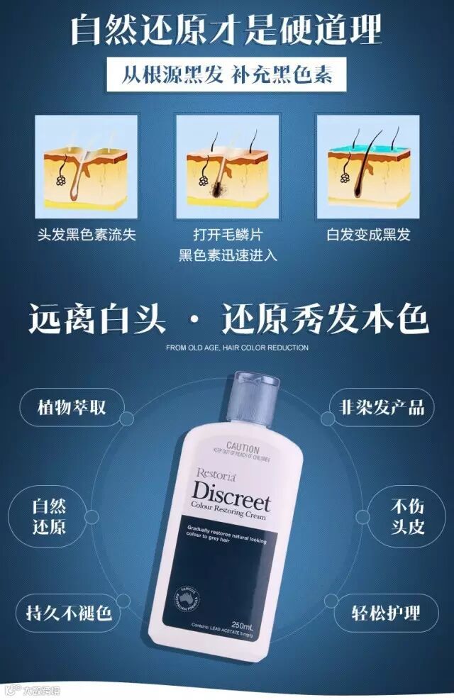 【大牌团购】澳洲Restoria Discreet黑发还原黑发乳250ml非染发 原价:109元 VIP /黑卡M1会员 福利补贴价:89元 发型选对了堪比整容