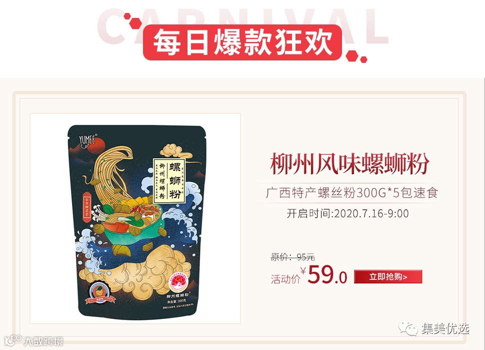 【大牌团购】yumee柳州风味螺蛳粉广西特产螺丝粉300g*5包速食方便面米线酸辣粉 原价:95元 VIP /黑卡M1会员 福利补贴价:59元