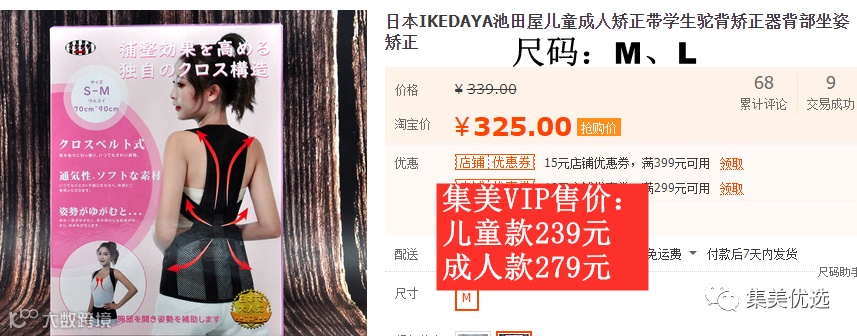【大牌团购】日本IKEDAYA池田屋儿童成人矫正带学生驼背矫正器背部坐姿矫正 原价:399元 VIP /黑卡M1会员 福利补贴价:儿童款239元,成人款279元
