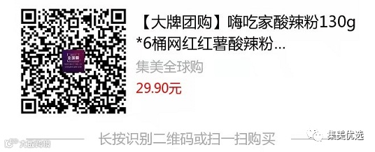 【大牌团购】嗨吃家酸辣粉130g*6桶 原价:39.9元 VIP /黑卡M1会员 福利补贴价:29.9元 有这么一种食物,吃的时候“痛并快乐着”,但还是让人欲罢不能,它就是嗨吃家酸辣粉。