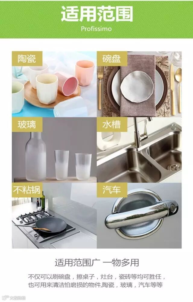 这款百洁布,材质环保,天然无毒,德国几乎家家户户都在用。 刷碗,刷锅,擦拭厨具,清洁家具,去油效果好,易清洗,不沾油。 不滋生细菌,轻轻一抹,不留水迹,不留布屑,是妈妈们厨房的好帮手!