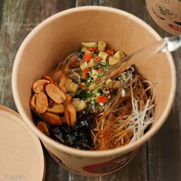 配料丰富,精心调配,才成就了这桶嗨吃家酸辣粉。