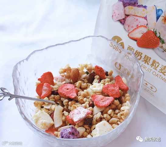各种坚果水果挑逗你的味蕾 拌着酸奶吃酸甜可口,美味十足 泡牛奶吃浓香四溢,回味无穷加 冰激凌或者做成坚果麦片冰棒 好吃到根本停不下来