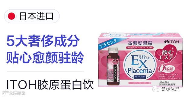 【大牌团购】ITOH井藤汉方猪胎盘胶原蛋白饮料50ml*10瓶 原价:269元 SVIP福利补贴价:199元 要想皮肤保持弹性,光滑水嫩,最必不可少的自然是胶原蛋白。每日坚持服用胶原蛋白,可以让皮肤焕发年轻光泽。