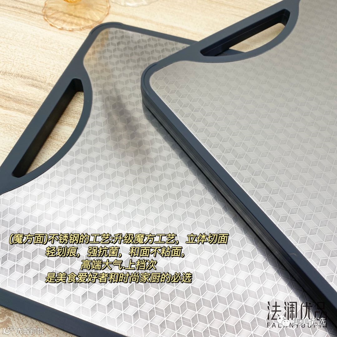 双面不锈钢抗菌发霉切菜板 耐砍耐磨,建议用来切生肉生鲜类,魔方面 防霉、抗菌易清洗,建议用来切熟食,水果蔬菜类,区分使用干净方便!这款双面不锈钢抗菌发霉切菜板我已经下手了。