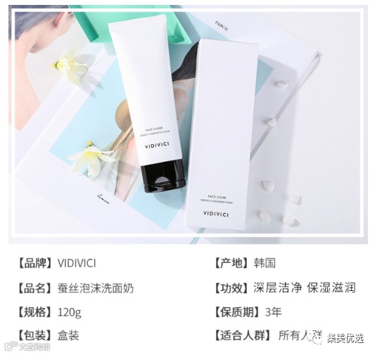 【限时秒杀】VIDIVICI女神蚕丝泡沫洗面奶 原价:159元 VIP /黑卡M1会员 福利补贴价:99元 一支号称“韩国小香奶奶”的洗面奶,里面含有大量的纤维蛋白,能抑制黑色素,温和去除角质、彩妆,拥有微量蛋白质,给肌肤注入能量,洁面卸妆二合一,是香奶奶山茶花的平替哦。