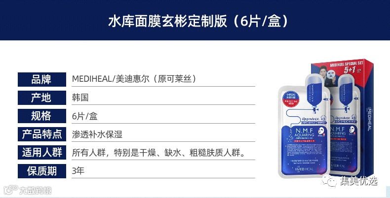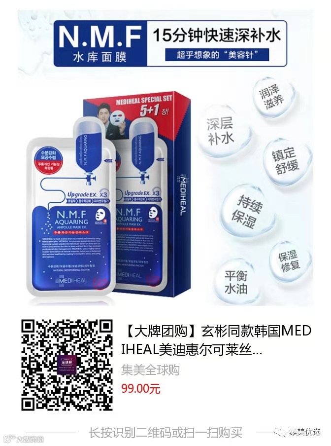 【大牌团购】玄彬同款 韩国MEDIHEAL美迪惠尔可莱丝针剂水库补水保湿面膜6片*3盒 原价:169元 VIP /黑卡M1会员 福利补贴价:99元 到了秋冬