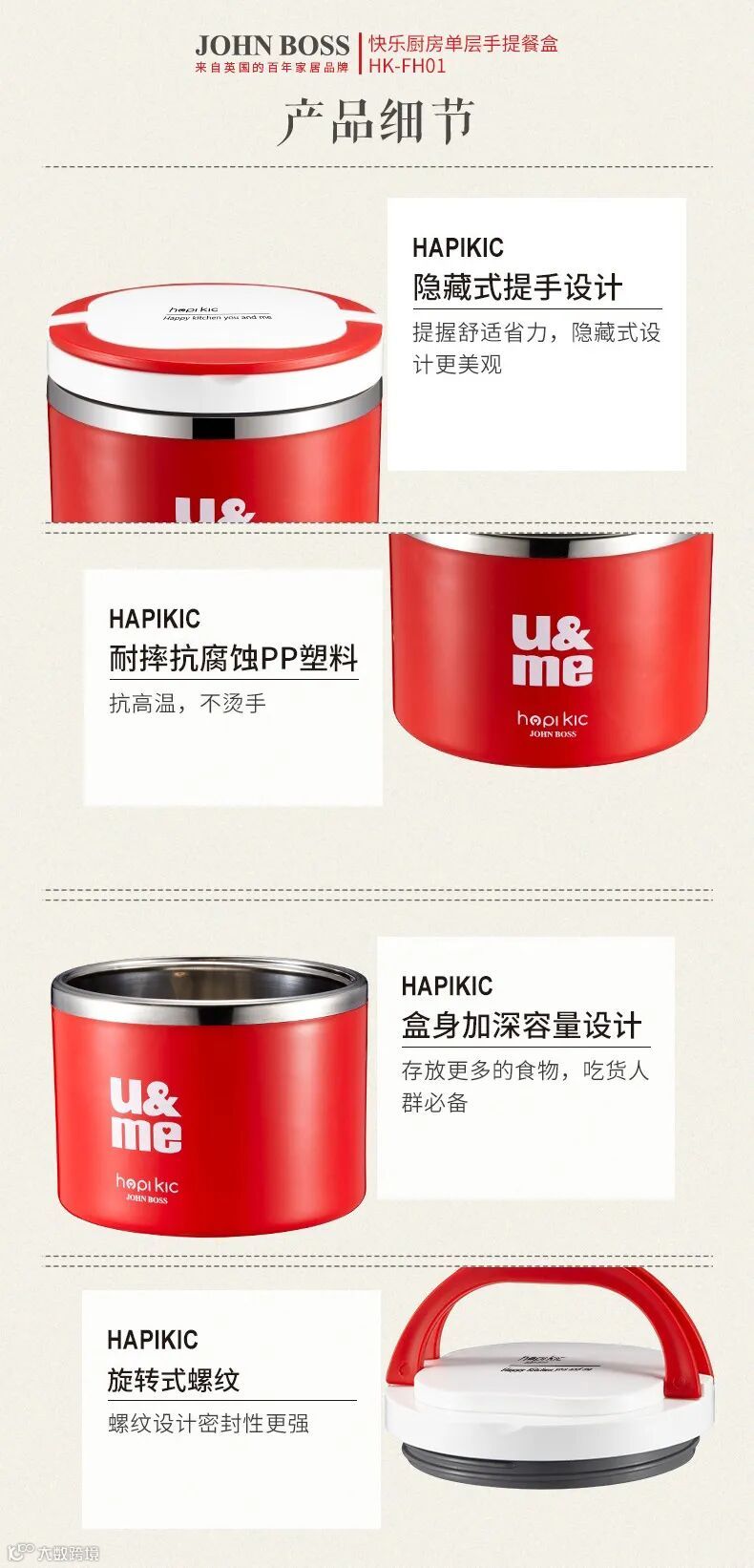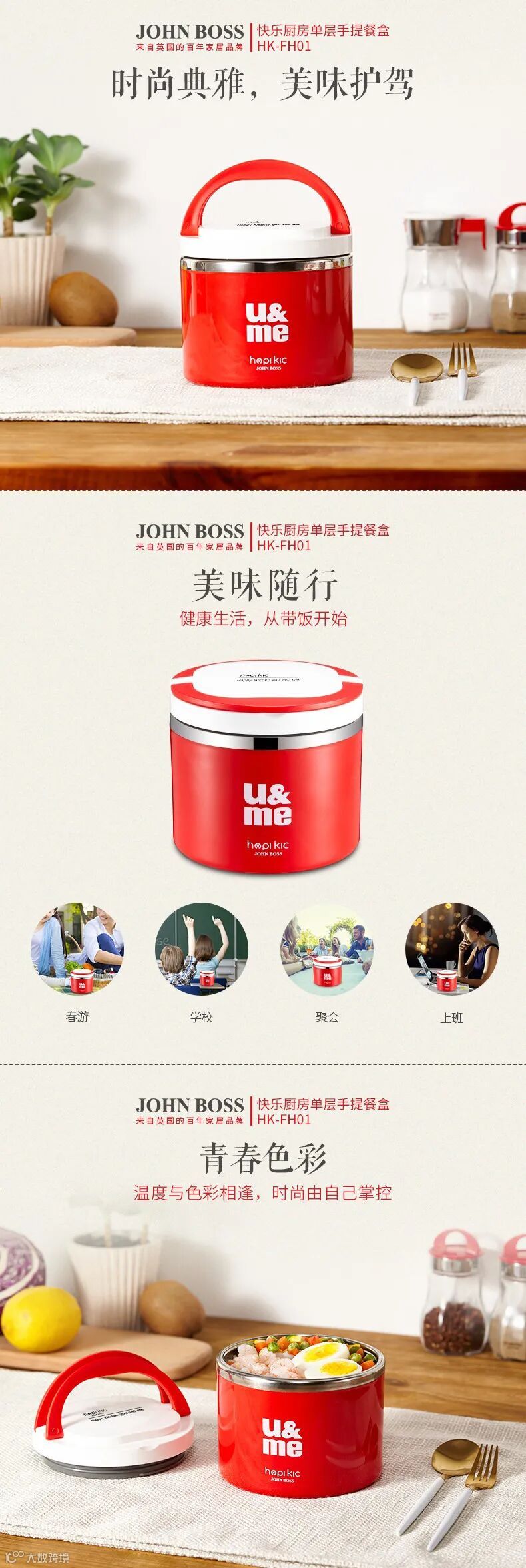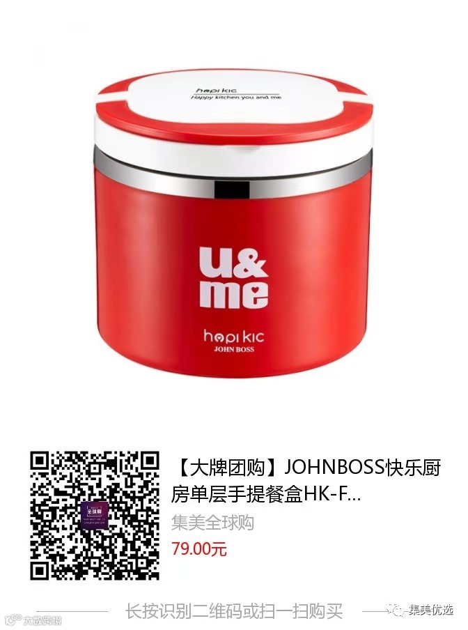 【大牌团购】JOHNBOSS快乐厨房单层手提餐盒HK-FH01 原价:99元 VIP /黑卡M1会员 福利补贴价:79元 最近吃的外卖太多了,突然觉得还是自己做的饭好吃,早晨上班带点自己在家做的饭,中午一加热,香喷喷的那也是一种享受啊!