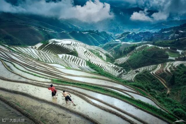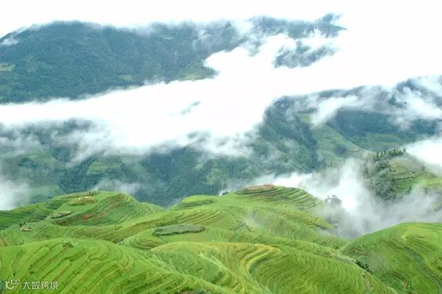 从流水湍急的河谷,到白云缭绕的山巅,从万木葱茏的林边到石壁陡崖前,凡有泥土的地方,都开辟了梯田。