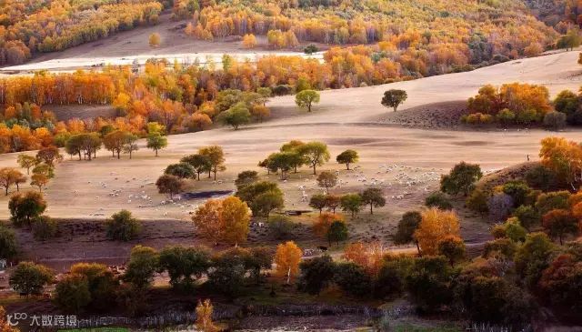 秋季,3000余平方公里的金黄,与蓝天、白云、山川、河流构成一幅醉人的金秋画卷。