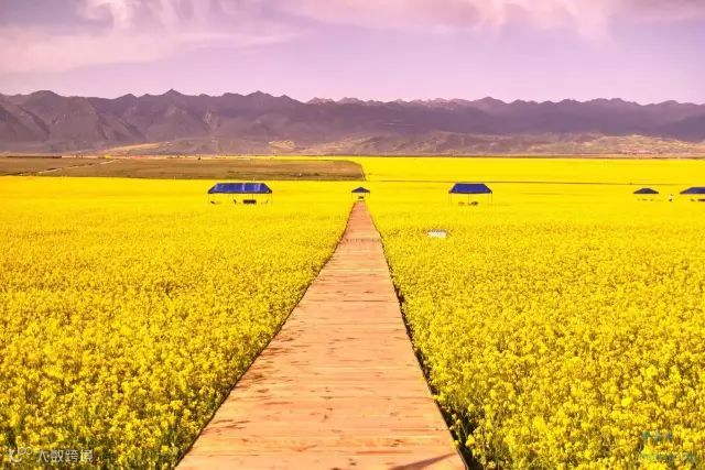 7、8月之时,环湖千亩的油菜花竞相绽放。碧波万顷的湛蓝外围散布着金灿灿的亮黄,高山牧场的野花五彩缤纷,如绸似锦,数不尽的牛羊膘肥体壮,点缀其间。