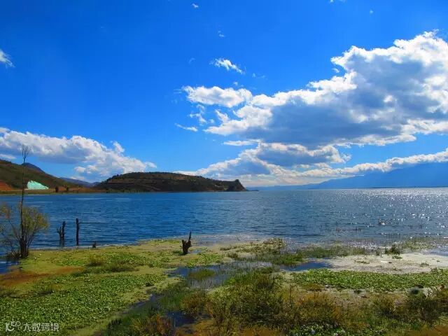 湖面像海一样辽阔,无比真实的云彩蔓延在青绿色的湖水上,她圣洁的美让人无法抗拒。