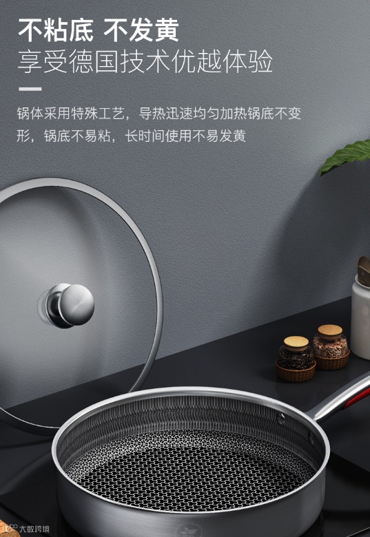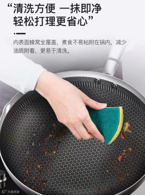 蜂窝不粘技术是通过德国蚀刻工艺,在锅壁内蚀刻出凹凸不平的精细纹理。