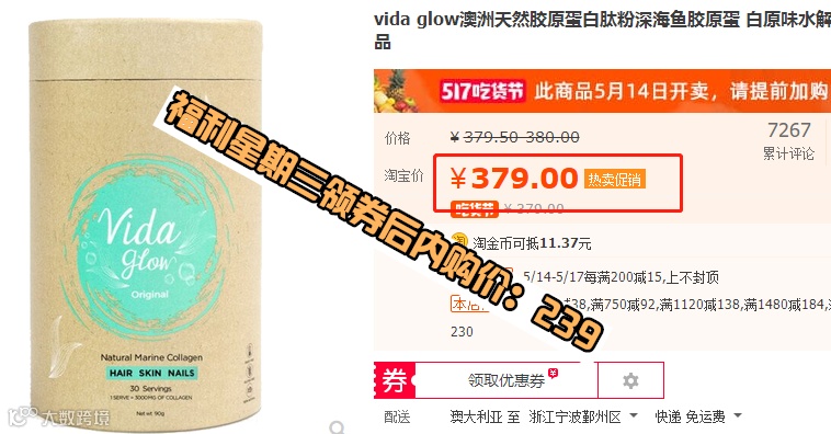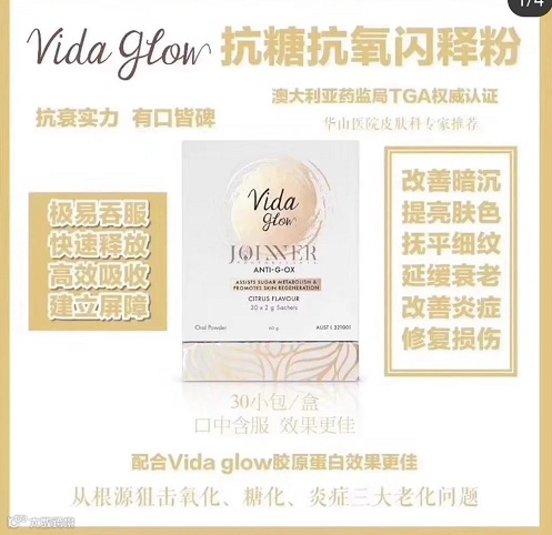 澳洲vida glow 抗糖抗氧闪释粉2g*30小包 原价:428元 福利星期三领券后内购价:298元
