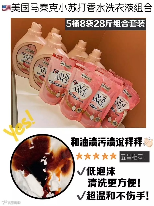 今天安利这款美国马泰克小苏打香水洗衣液组合5桶8袋,超级实惠,有了它,和油渍污渍说拜拜~
