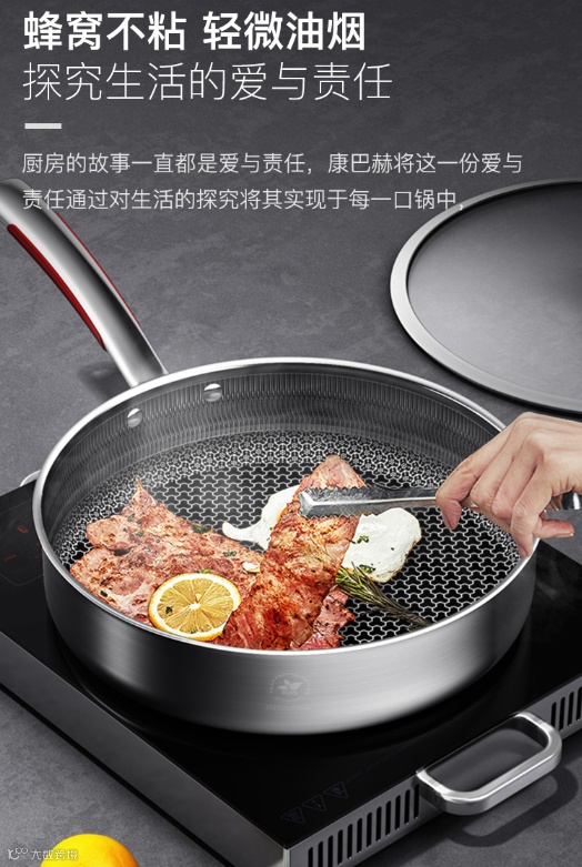 康巴赫第三代无论是不锈钢的等级还是无油烟的情况,都完胜其他代康巴赫。锅盖的温感设计,锅柄的防烫设计都是我最爱的。