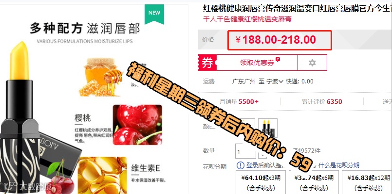 传奇今生红樱桃健康唇膏持久保湿不脱色孕妇口红 原价:188元 福利星期三领券后内购价:59元