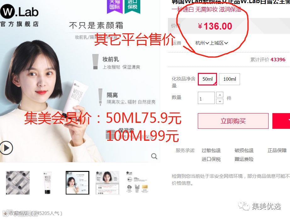 【大牌团购】 韩国正品w.lab白雪公主懒人素颜霜 懒人面霜保湿妆前乳 50ml/100ml团购价:79/109元 VIP /黑卡M1会员 福利补贴价:75.9/99元