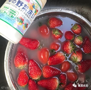 当发现蔬果上有白色残留物时,请用水充分洗净后再食用。本品融化在水里后,请不要长时间盛放在容器中。