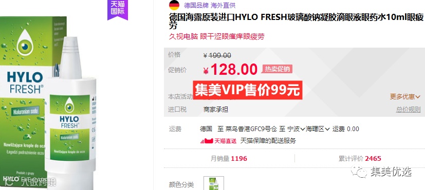【大牌团购】德国原装hylo海露眼药水 10ml 原价:139元 VIP /黑卡M1会员 福利补贴价:99元 这款德国眼药水