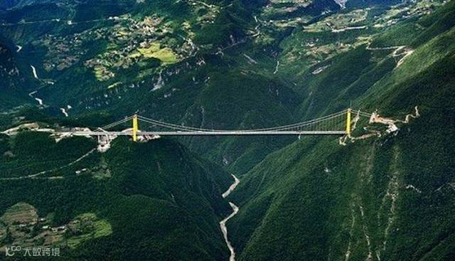 NO.4 矮寨大桥:位于湖南湘西矮寨镇境内,跨越山谷,德夯河流经谷底,桥面设计标高与地面高差达330米左右,全长1073.65m,悬索桥的主跨为1176m。该桥跨越矮寨大峡谷,主跨居世界第三、亚洲第一。