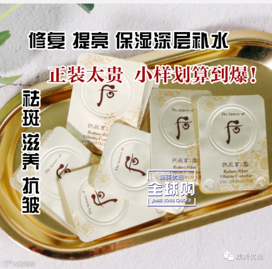 这个系列是Whoo针对年轻肌肤设计的,属于初级抗衰老产品。可以作为Whoo的入门级产品,没用过Whoo产品的客户,可以先试试这款。晚上护肤最后一步坚持用的话, 斑点和痘印都能一扫而光。