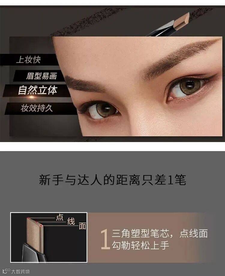 三角笔芯,精确勾勒出眉部线条