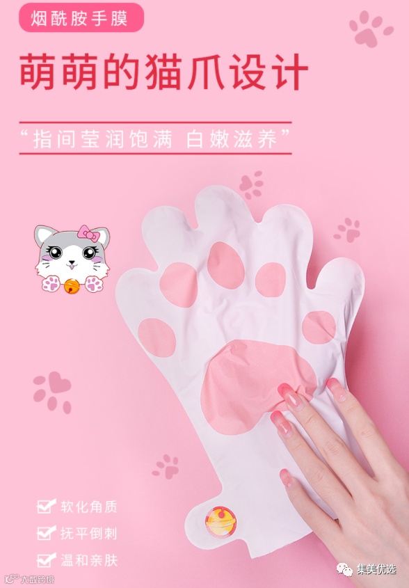 【功效】长效保湿,淡化手纹,滋养修护,祛除老茧,去除死皮,嫩白透亮