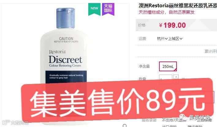 【大牌团购】澳洲Restoria Discreet黑发还原黑发乳250ml非染发 原价:109元 VIP /黑卡M1会员 福利补贴价:89元 发型选对了堪比整容