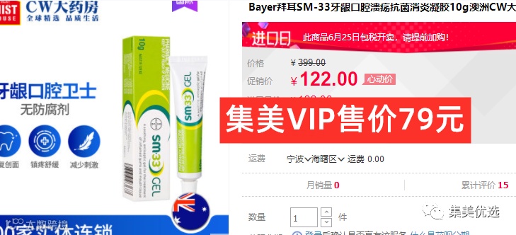 【大牌团购】澳洲SM-33 口腔溃疡牙龈炎消肿止痛软膏 10g 原价:199元 VIP /黑卡M1会员 福利补贴价:79元