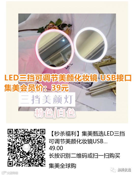 【限时秒杀】集美甄选 LED三挡可调节美颜化妆镜 USB接口 团购价:49元 VIP /黑卡M1会员 福利补贴价:39元