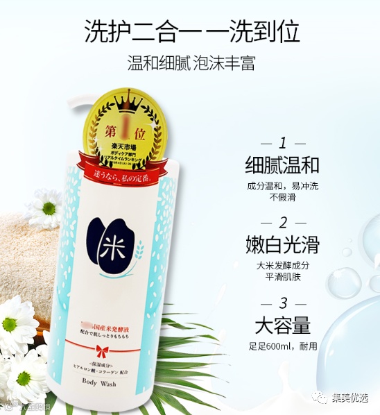 一瓶大米沐浴露,可以做到“清洁+去角质+保湿+调理肤质”,所以能够霸占着日本乐天销量No.1的位置。