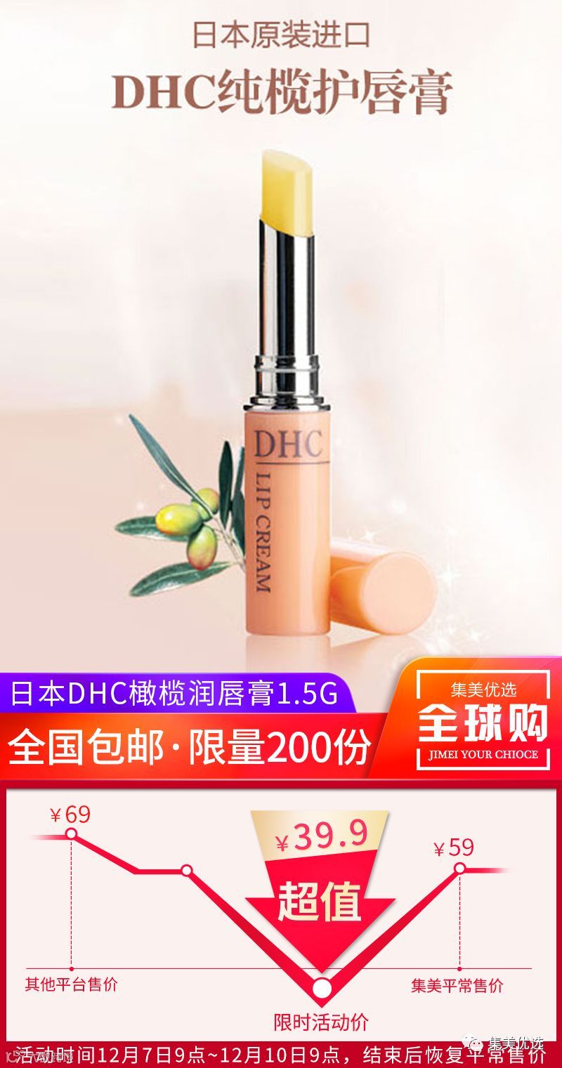 DHC唇膏成分中含有橄榄精华油,维生素E等,质地相当的湿润,很好的把唇上干燥的小起皮抚平!而且不添加香精色素防腐剂,孕妇小孩都可放心使用!