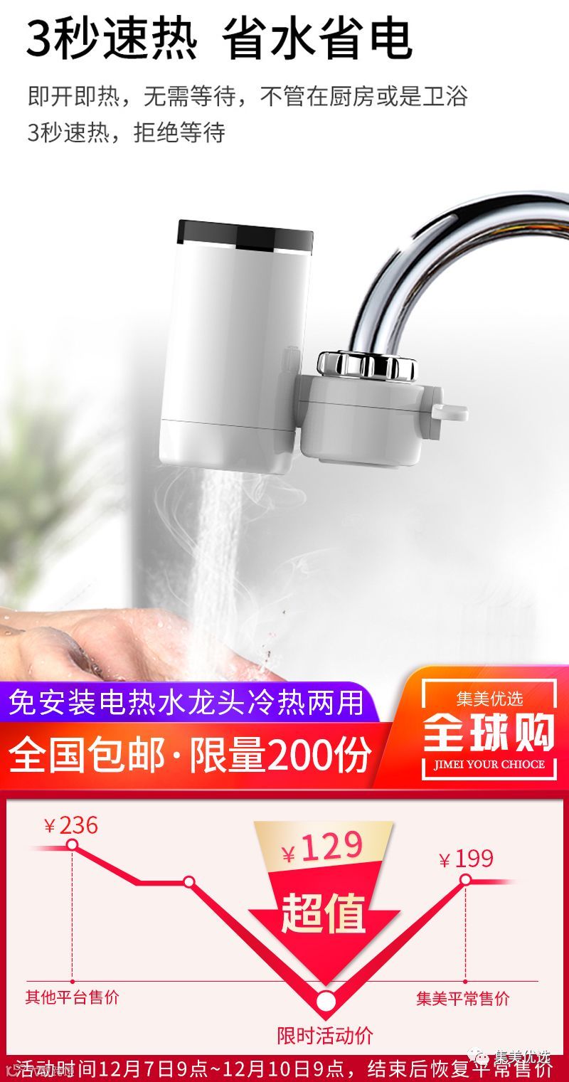 【福利团购】湘湘免安装电热水龙头即热式厨房快速过自来水加热器家用冷热两用