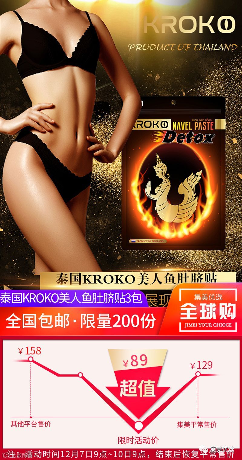 【福利团购】泰国KROKO美人鱼肚脐贴 燃烧卡路里 3包