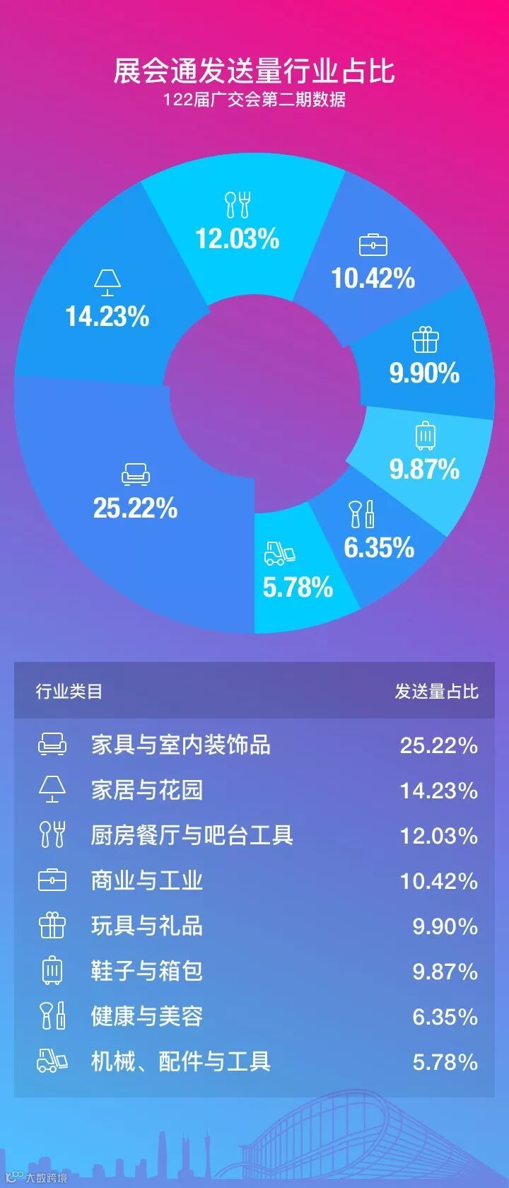 家居(家具)占比最高,也是广交会电商平台的优势行业之一