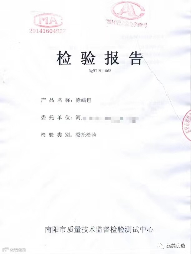 除螨包的所有资质齐全,检测报告全部合格。