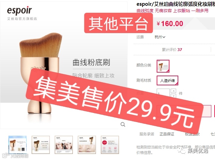 【大牌团购】espoir/艾丝珀曲线轮廓弧度化妆刷粉底刷BB霜粉底液刷裸妆化妆刷 原价:39.9元 VIP /黑卡M1会员 福利补贴价:29.9元