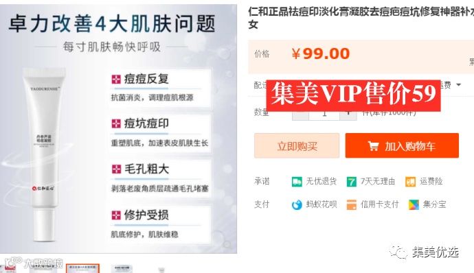 【大牌团购】仁和祛痘印淡化膏凝胶去痘疤修复神器补水芦荟胶青春男女适用 原价:79元 VIP /黑卡M1会员 福利补贴价:59元 ![]()