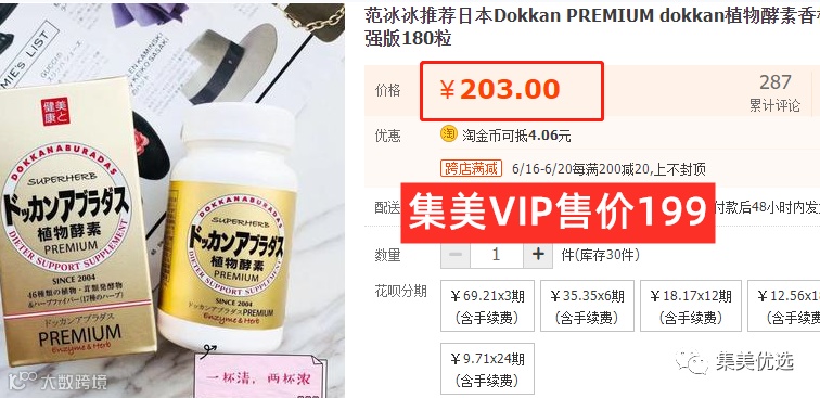 【限时秒杀】日本dokkan premium植物酵素果蔬香槟金升级加强版180粒装 原价:238元 VIP /黑卡M1会员 福利补贴价:199元