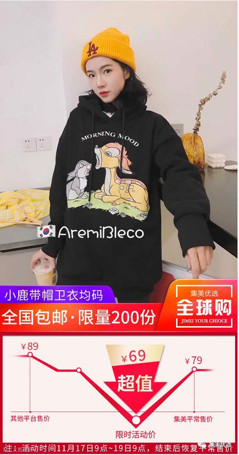 【福利团购】aremibleco 小鹿带帽长袖加绒卫衣 均码140斤可穿