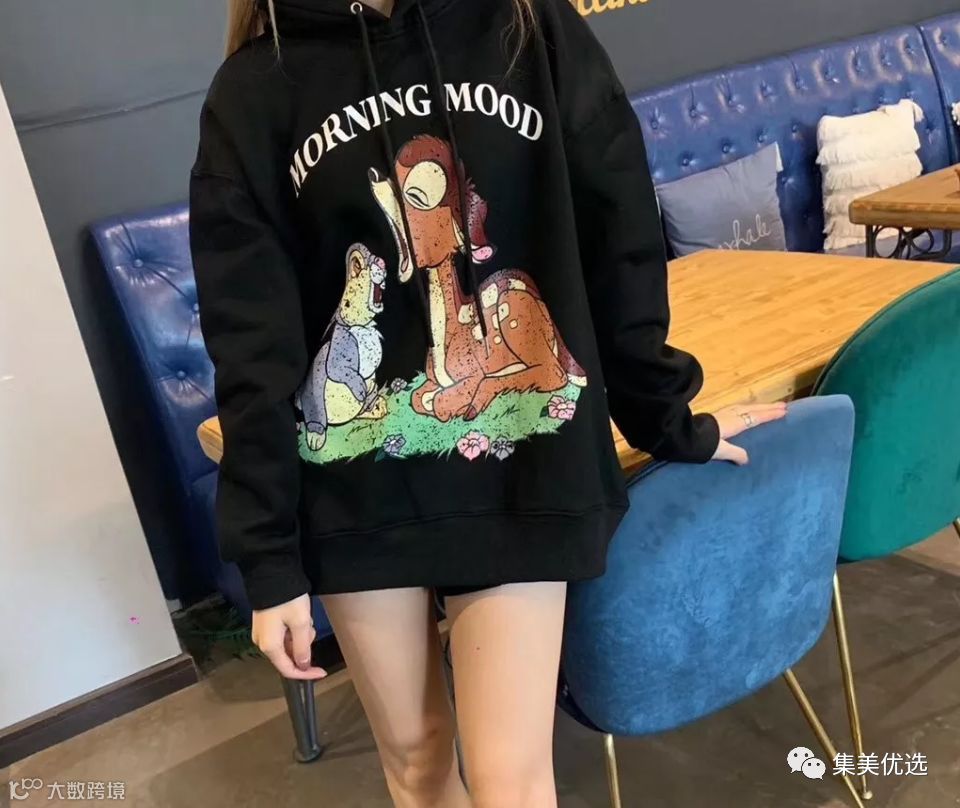 迪士尼系列卡通人物图案小鹿斑比~黑色也比较百搭显瘦不出错!!!不知道穿什么的时候穿这件准没错~