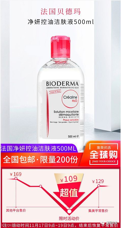 【福利团购】法国贝德玛(Bioderma)净妍控油洁肤液500ml