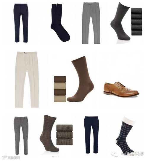 选择与裤子同色调的袜子。不论是稍微浅一点或是深一点的颜色,灰色西装裤就配上浅灰或是碳灰色,不经意微露出来的时候,看起来也比白袜顺眼,比黑袜优雅。