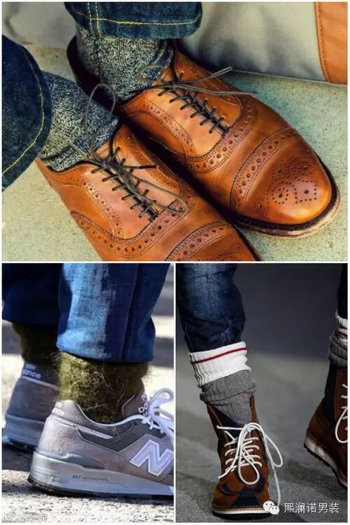 改变材质。其实是让袜子有时尚感的很重要的原因。选择了合谐色调的袜款之后,不妨开始加入厚的针织材质,让袜子的分量感更加重,但是要特别注意的是选择这样的袜款,裤子的搭配应该比较粗犷的单品,像是丹宁、皮革、粗毛呢等。