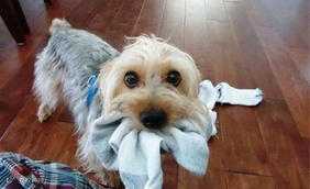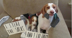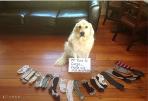 霸占袜子的举动,其实是爱的表现,不过也要注意狗狗是否不经意将袜子吃下肚喔!