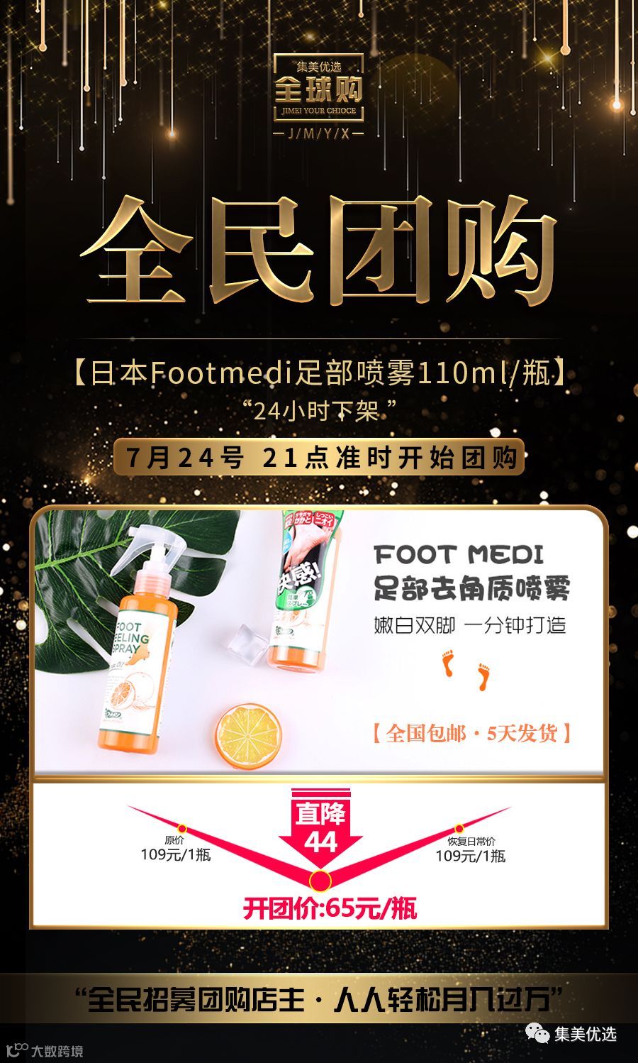 福利团购日本Footmedi足部喷雾去脚质脚后跟去死皮神器去角质去老茧110ml