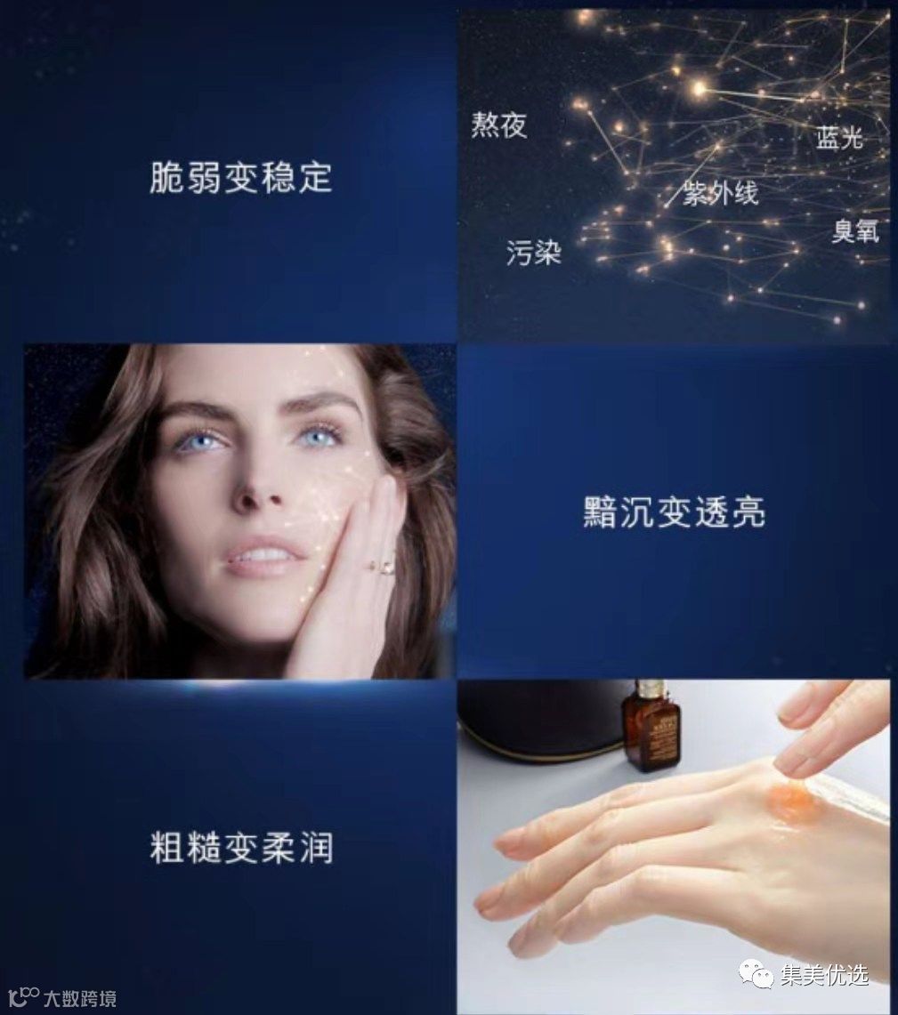 产品功效:抵御多种肌肤老化迹象,缓解肌肤干燥问题,淡褪细纹皱纹,重绽肌肤光采,无油配方。
