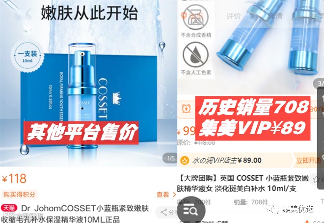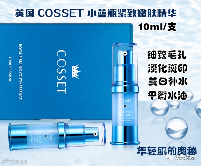 【大牌团购】英国 COSSET 小蓝瓶紧致嫩肤精华液女 淡化斑美白补水 10ml/支 原价:118元 VIP /黑卡M1会员 福利补贴价:89元